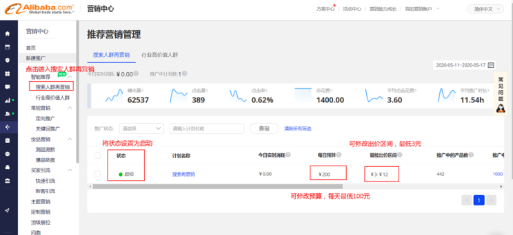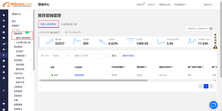 搜索人群再營銷根據(jù)買家的訪問邏輯,圈定哪些曾經(jīng)搜索過,點擊過您或者您同行的買家。將您的產(chǎn)品和這些關(guān)聯(lián)度非常高的人群匹配,在推薦場景中二次展示。