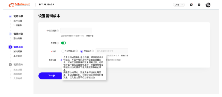 其中,針對【行業(yè)智能出價】仍然保留商家對于重點市場、重點人群的投放表達(dá)入口: