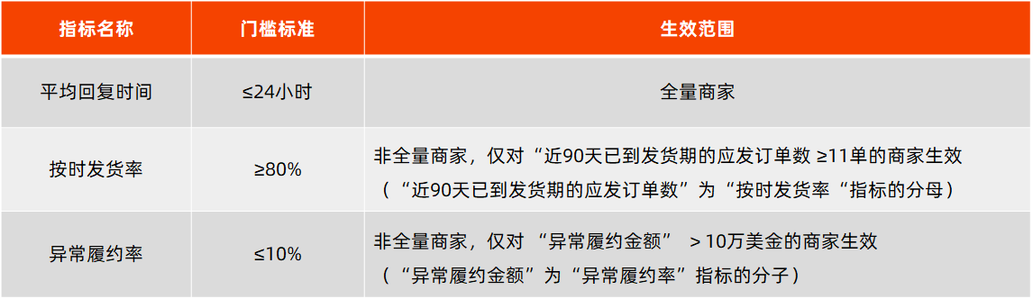 買家服務(wù)基礎(chǔ)要求門檻的指標(biāo)值和生效條件: