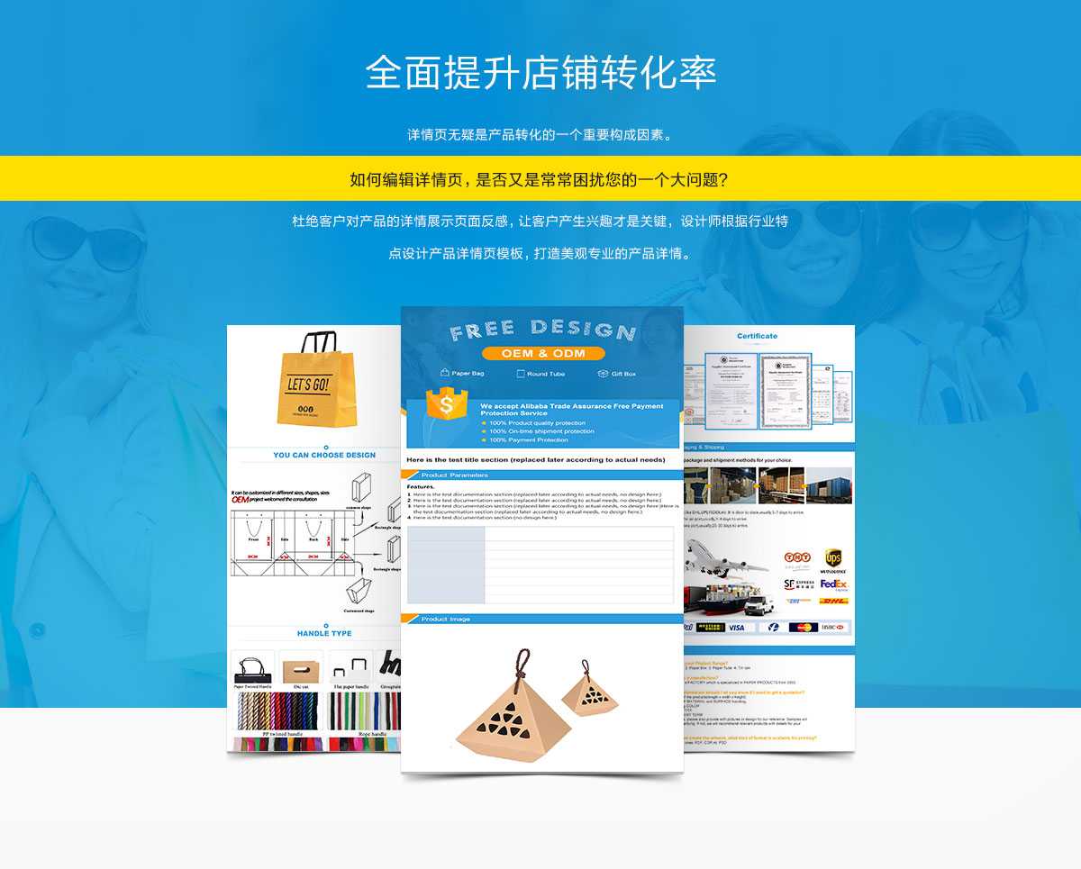 旺鋪首頁是企業(yè)形象的最好展示,對(duì)流量轉(zhuǎn)化起著至關(guān)重要的作用。同時(shí)首頁具備產(chǎn)品導(dǎo)購的功能,優(yōu)秀的界面布局能引導(dǎo)客戶長(zhǎng)時(shí)間駐足店鋪,并且有效的找到相關(guān)產(chǎn)品以獲得更多詳情。